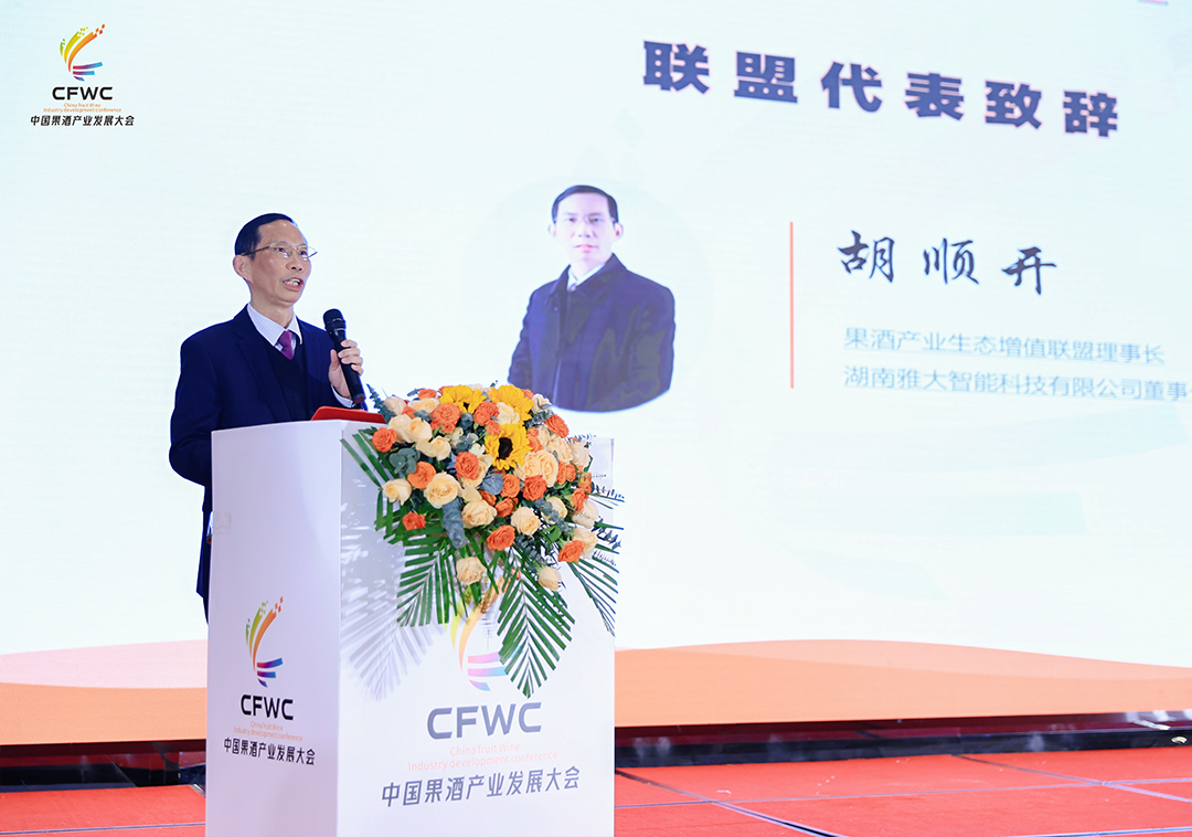 果酒產(chǎn)業(yè)生態(tài)增值聯(lián)盟理事長(zhǎng)胡順開代表支持單位致辭。