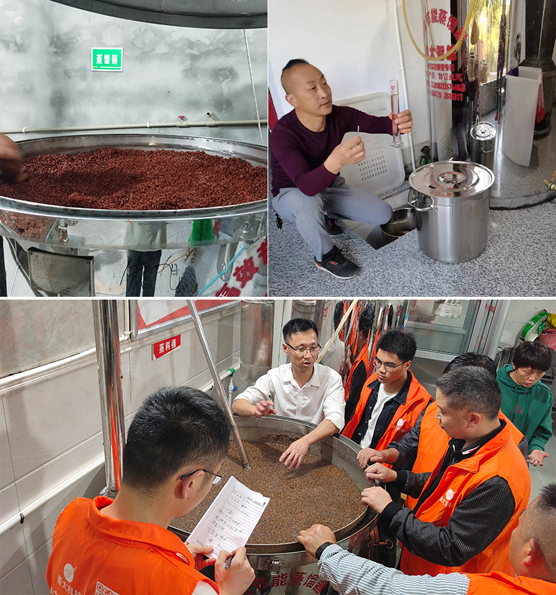 長(zhǎng)沙尋總采用高粱固態(tài)工藝,但出酒率只有35%。蔣老師上門指導(dǎo)后,發(fā)現(xiàn)兩個(gè)關(guān)鍵問(wèn)題:一是發(fā)酵好的酒醅太濕,二是上甑方法不對(duì)導(dǎo)致高度酒少、低度酒多。經(jīng)過(guò)技術(shù)改進(jìn),出酒率提升到了58%,每100斤糧食多賺300多元!