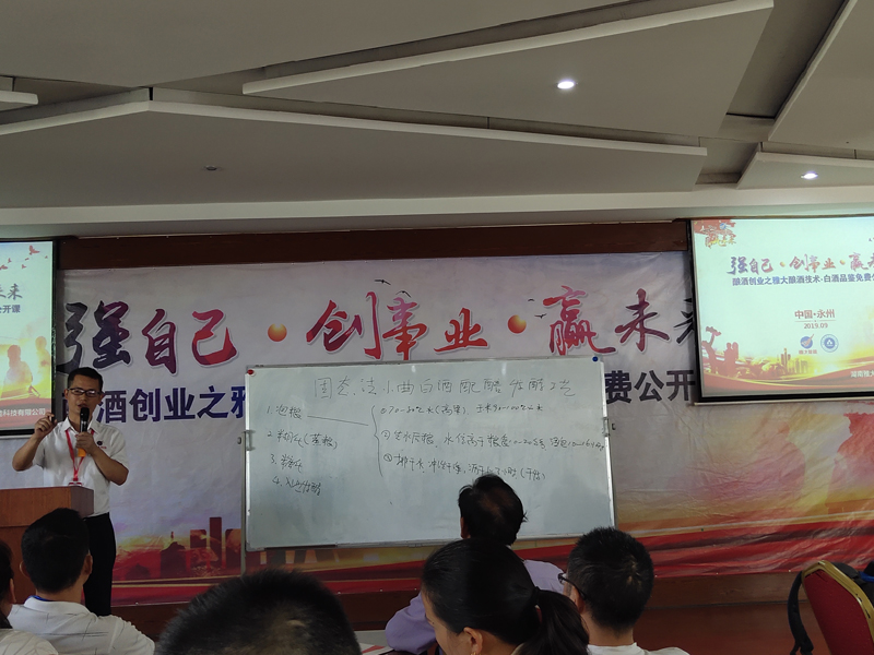 首先,蔣老師從理論上為大家詳細(xì)講解了泡糧、初蒸、燜糧、復(fù)蒸、下曲、糖化、入池發(fā)酵的每一個細(xì)節(jié)。