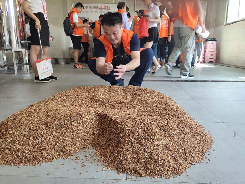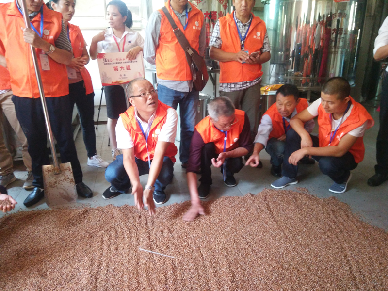 學(xué)員們親自動手參與高粱酒釀造