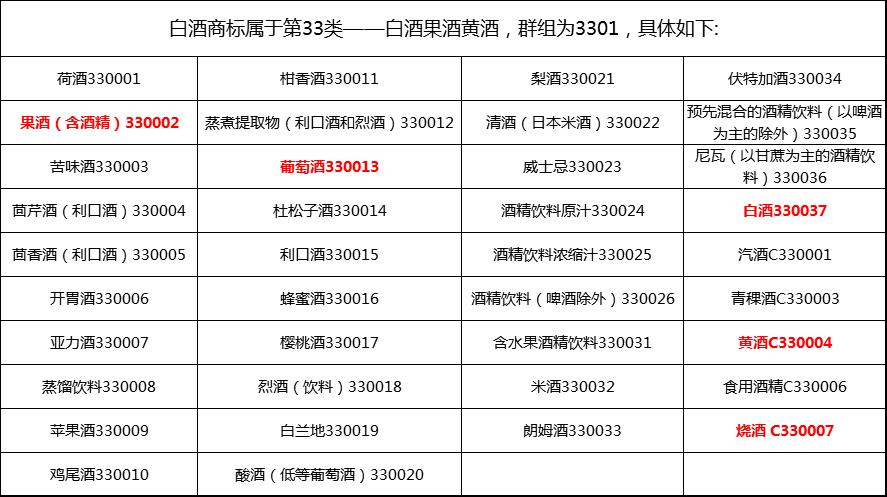 根據(jù)《商標注冊用商品和服務國際分類表》,酒類商標屬于第33類,具體涵蓋白酒、果酒、黃酒等(群組3301)。注冊前務必確認類別,避免因分類錯誤導致注冊失敗。
